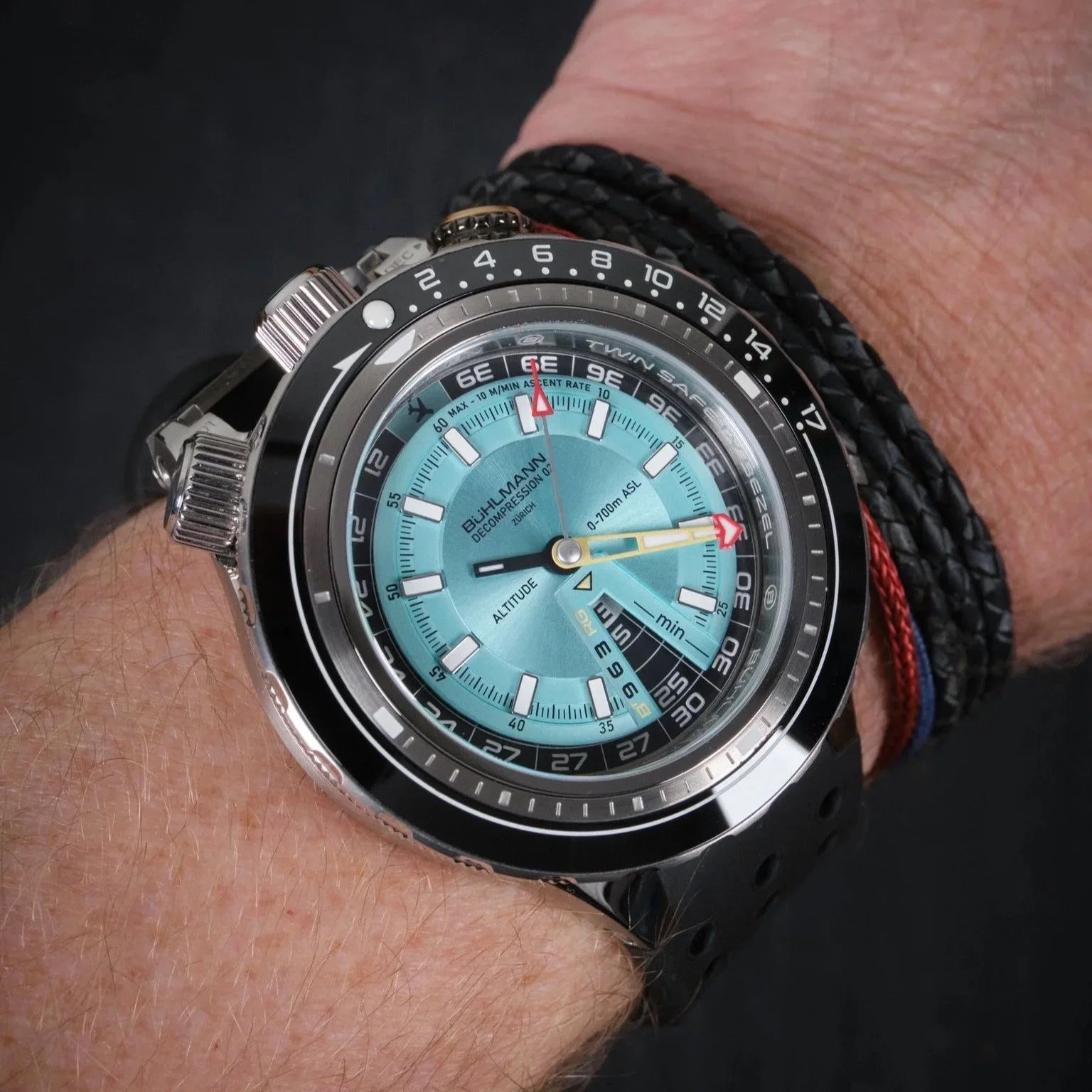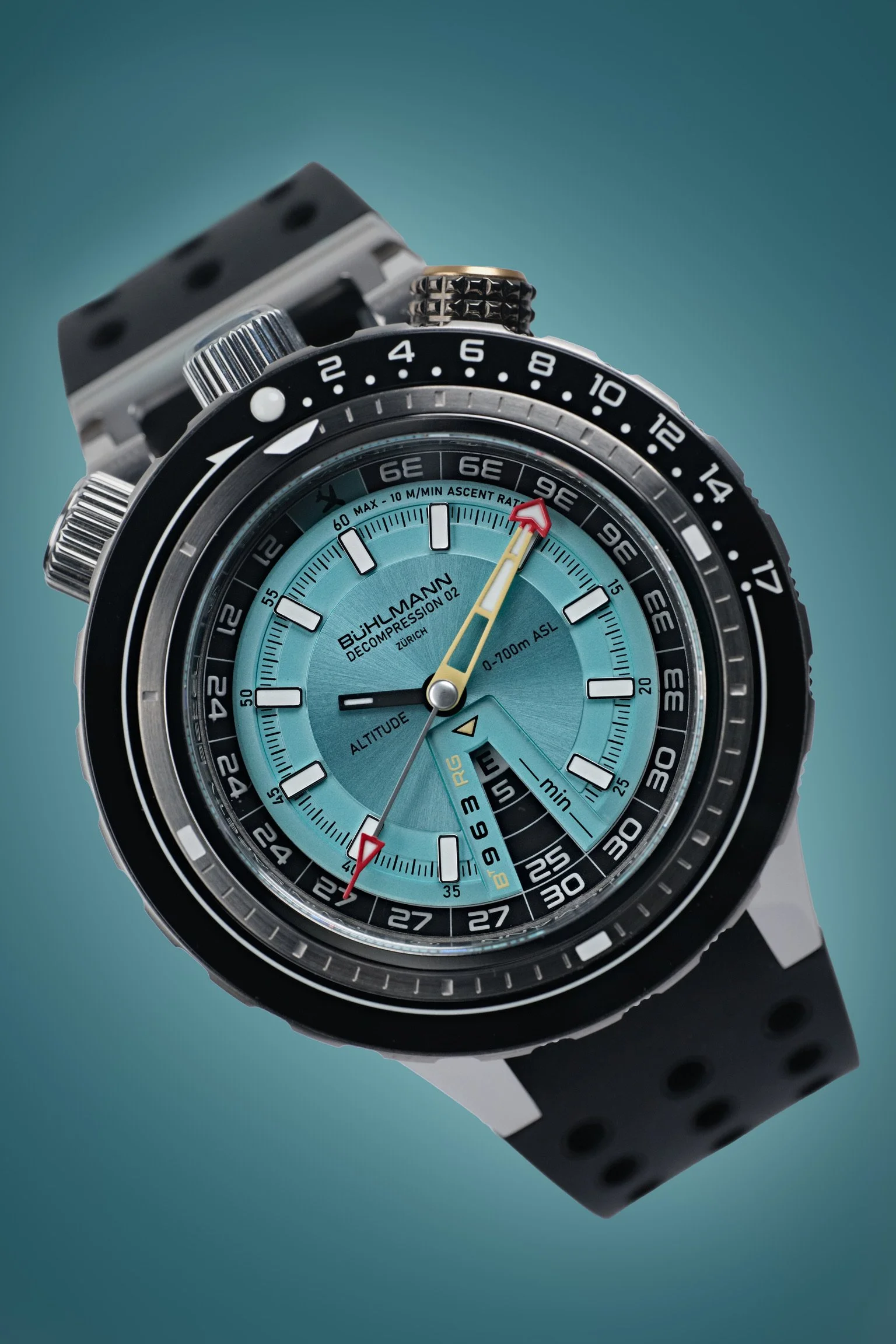 The Decompression 02 is built around the Bühlmann decompression model. That’s the same underlying theory used by most modern dive computers, but here it’s been translated into something you can physically interact with. No screens, no menus, no hidden calculations. It’s all there on the dial and bezel.