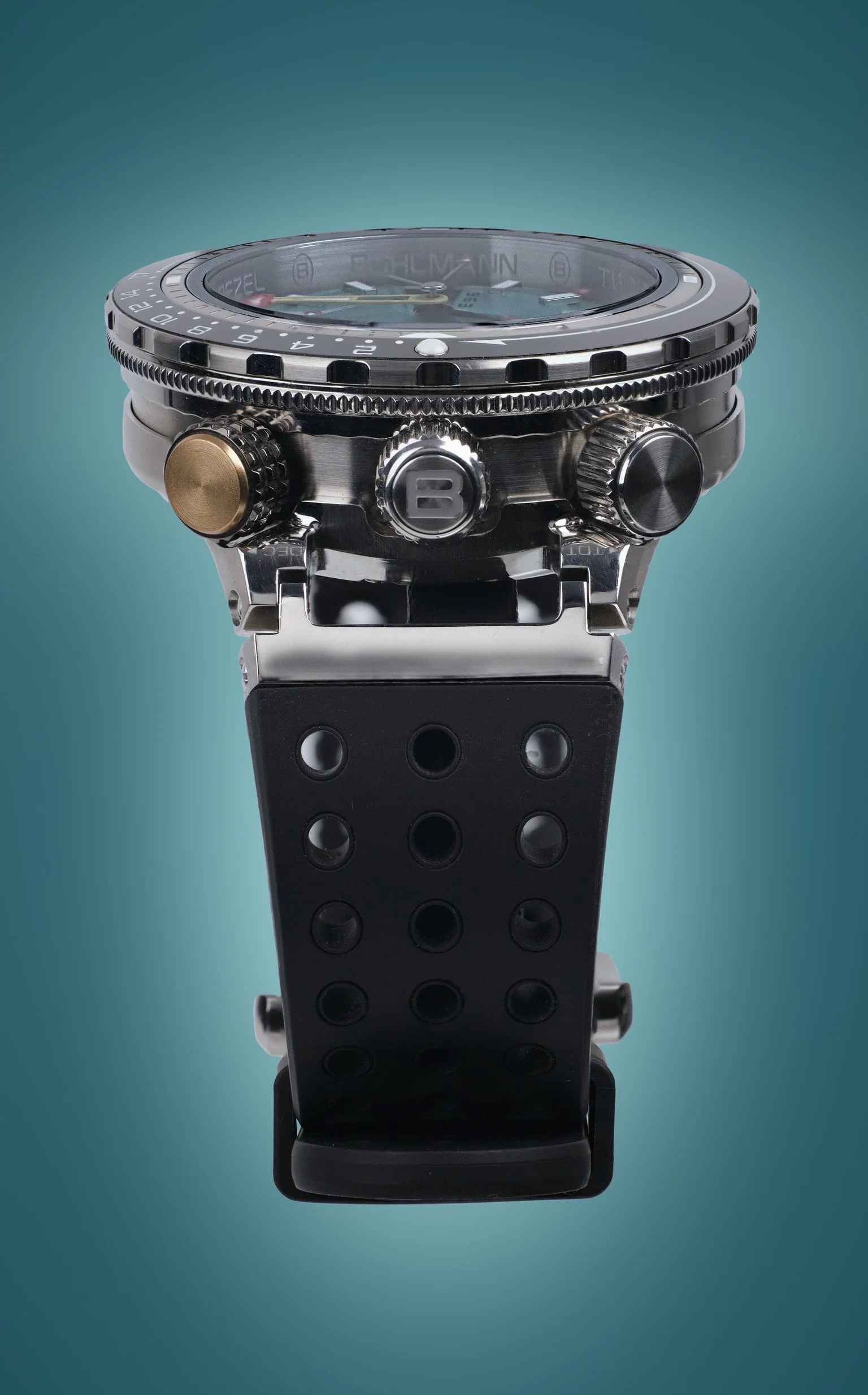 Then there’s the crown setup, which looks intimidating at first glance but quickly becomes part of the charm. Multiple crowns, each with a job to do, all with a reassuringly mechanical feel when you use them. Nothing vague or overly light. Everything clicks, turns, and locks with purpose. Same goes for the bezel. Firm, precise, and integral to how the watch actually functions, not just there to tick a box.