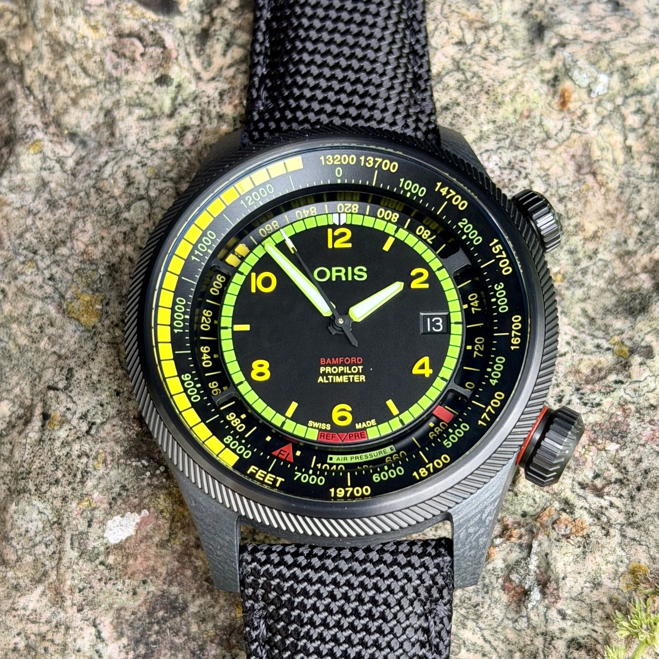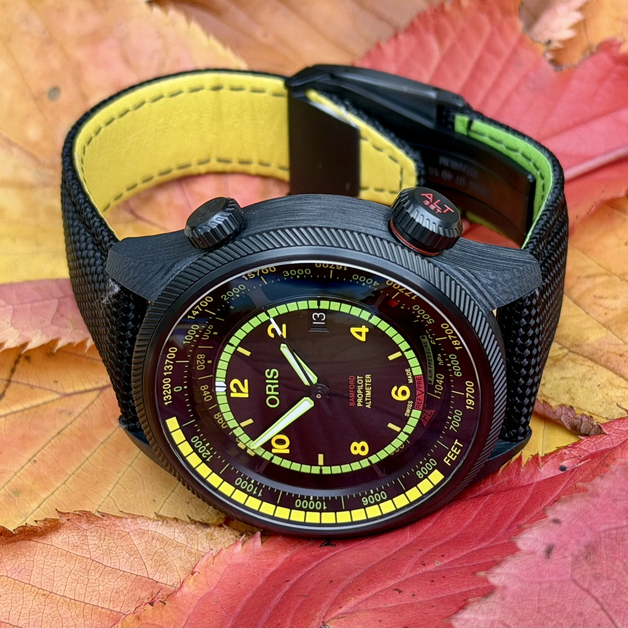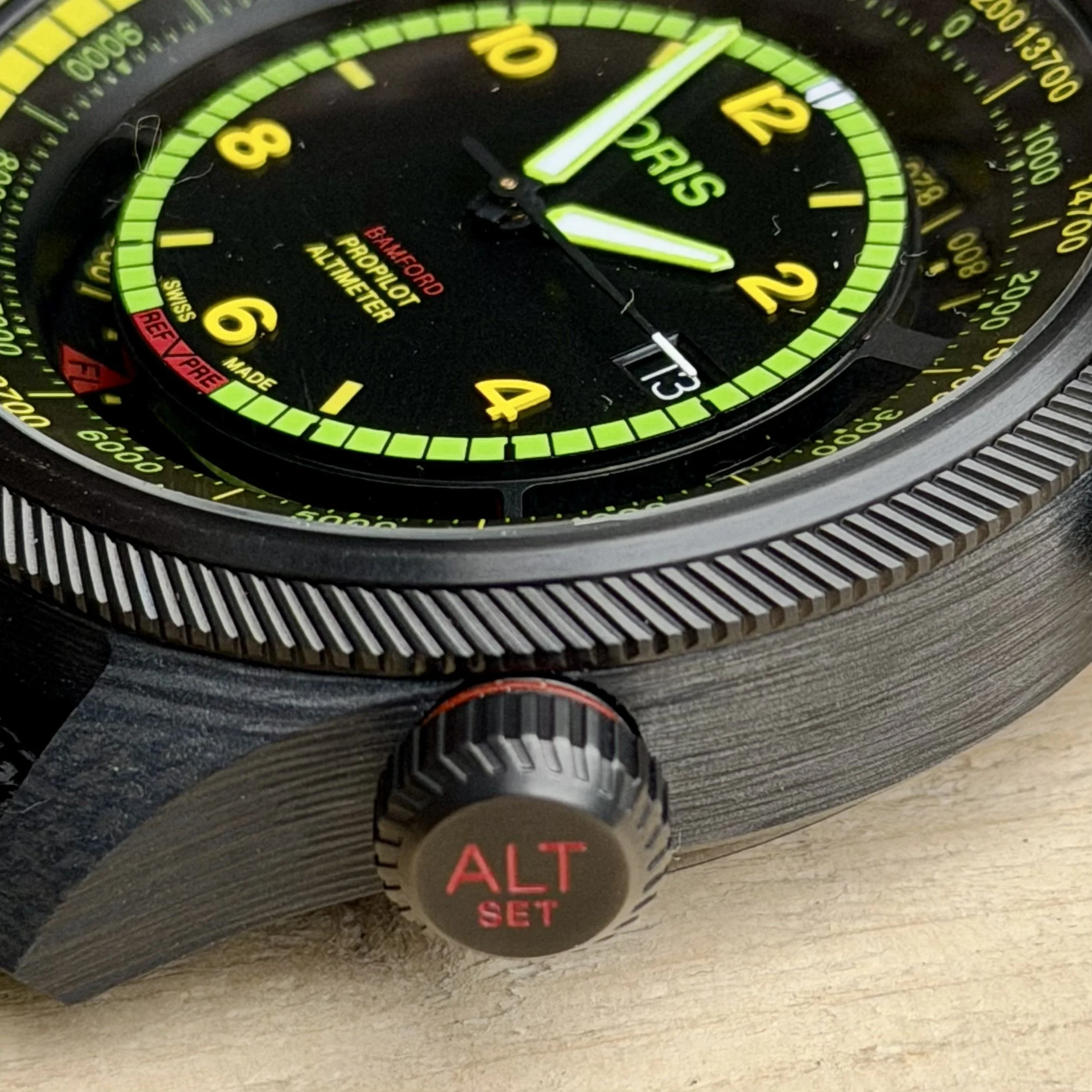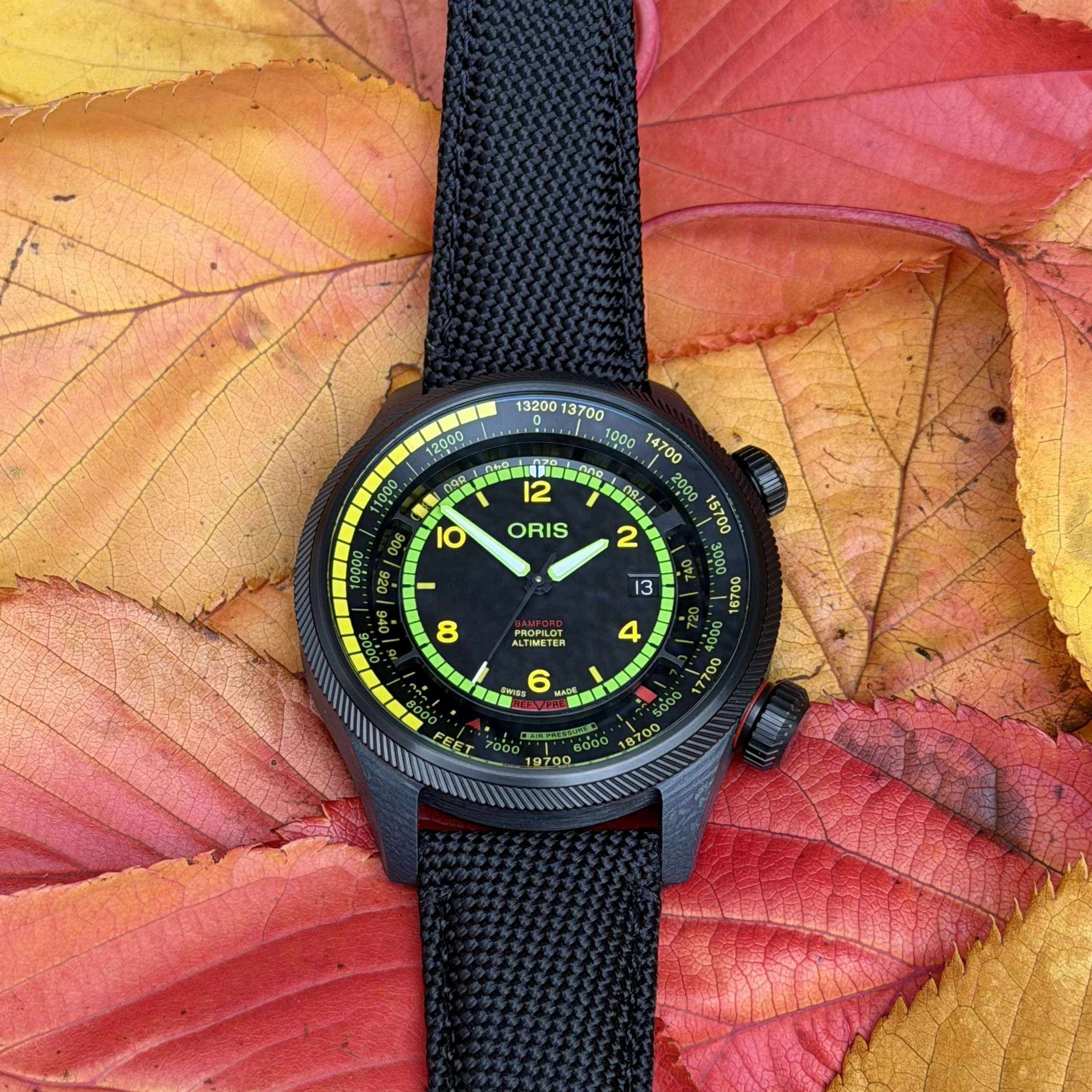 The base for this collaboration is the Oris ProPilot Altimeter, a watch with serious bragging rights, being the only one in the world to combine a Swiss-made automatic movement with a mechanical altimeter. It’s a technical flex wrapped in pure tool-watch DNA.