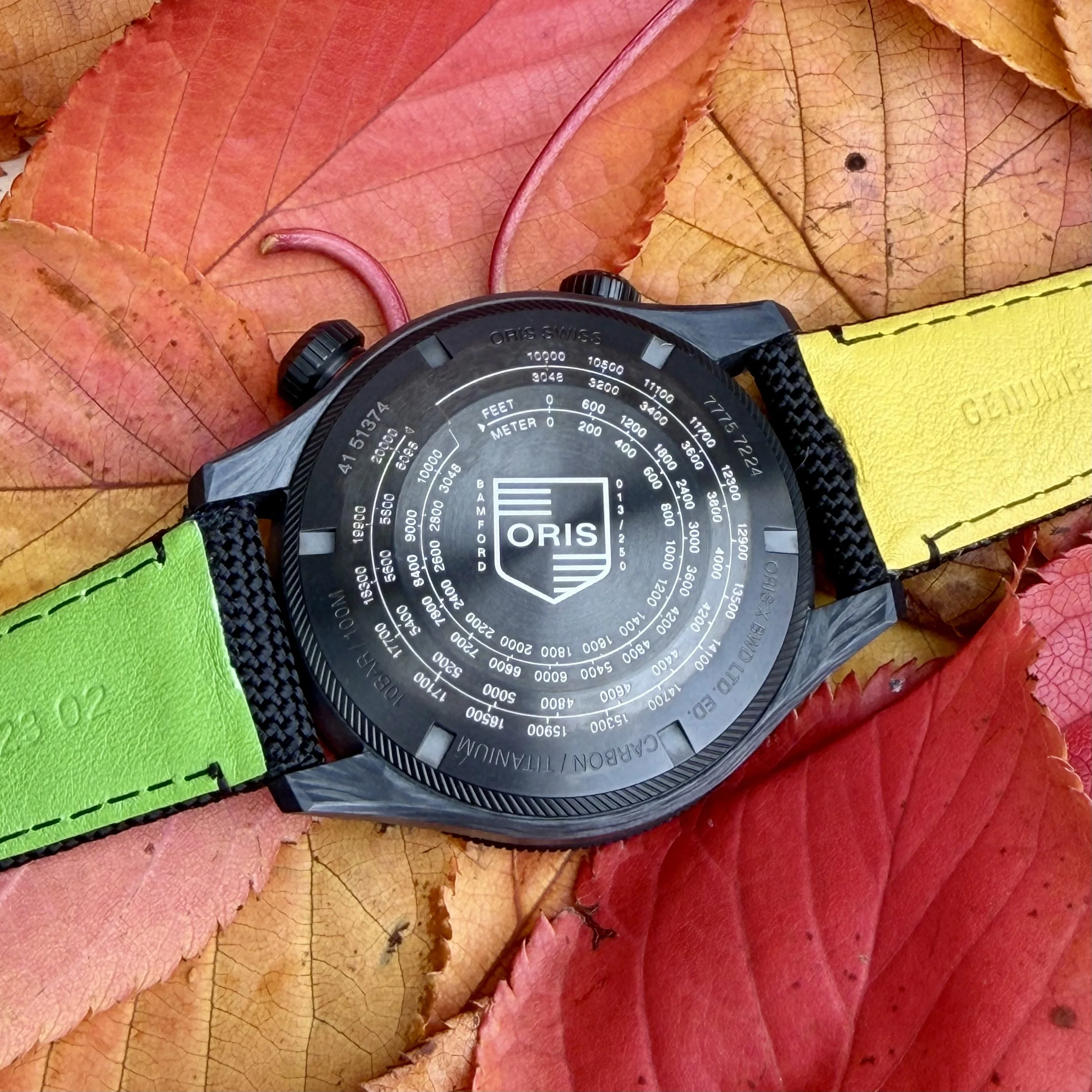 To craft the case, Oris partnered with 9T Labs, a Swiss engineering firm specialising in aerospace materials. Together, they developed a carbon composite using additive manufacturing techniques never before applied in watchmaking. The result? A material stronger than many metals yet roughly two-thirds lighter than titanium — a remarkable feat of modern engineering and a fitting foundation for such an audacious design.