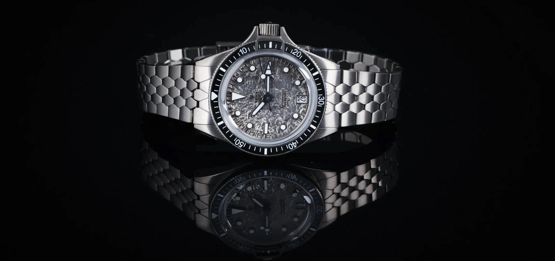 The Superman line has always been one of YEMA’s most recognisable designs, and the Moon Tide manages to keep that DNA intact while introducing something genuinely fresh. The lunar inspired dial adds character without becoming gimmicky, and the use of titanium throughout keeps the watch practical for everyday wear. Priced at €2,190 on the steel bracelet and €1,890 FKM strap.