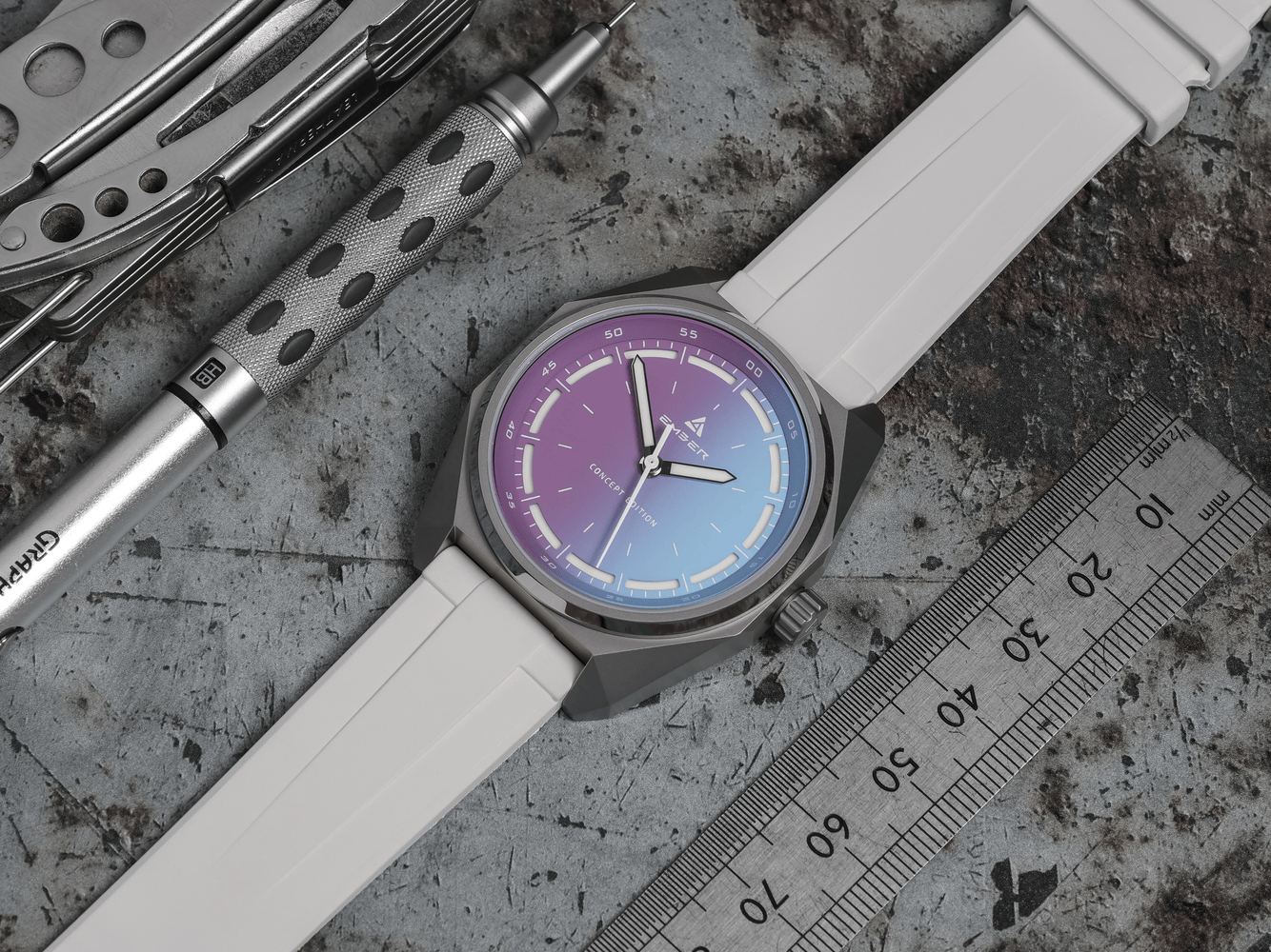 Ember Watch Company will debut the Rocket Concept Edition at British Watchmakers’ Day 2026, marking the launch of a new series created to explore fresh ideas in colour, material, and design. Limited to 45 pieces, this first Concept Edition features a striking vertical gradient dial that transitions from soft purple and pink into light blue, alongside unique dial text. It comes on a stainless steel bracelet with additional white and light blue FKM rubber straps. Specifications include a bead blasted 316L steel case, sapphire crystal, 100m water resistance, and a TMI NH38 automatic movement. Priced at £449, all pieces will be available on the day.