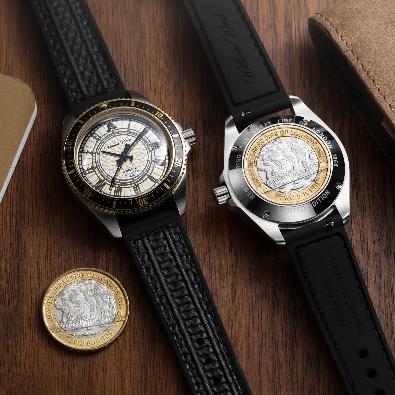 William Wood Watches presents the Great Fire of London Watch, a British Watchmakers’ Day Special Edition limited to the first 50 pieces available at the event. Blending historical significance with modern watchmaking, each caseback features an authentic £2 coin commemorating the Great Fire of London.