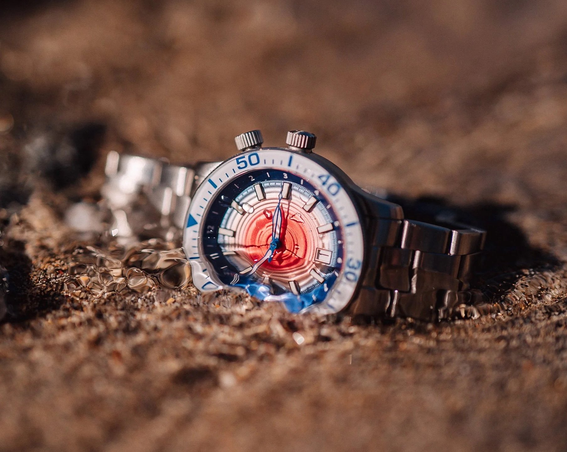 The result is a striking concentric ripple pattern with a gradual transition through red, white, and blue, honouring the colours of the event. Limited to just 38 individually numbered pieces, this gender neutral watch blends coastal inspiration with Golby’s practical and distinctive design approach.