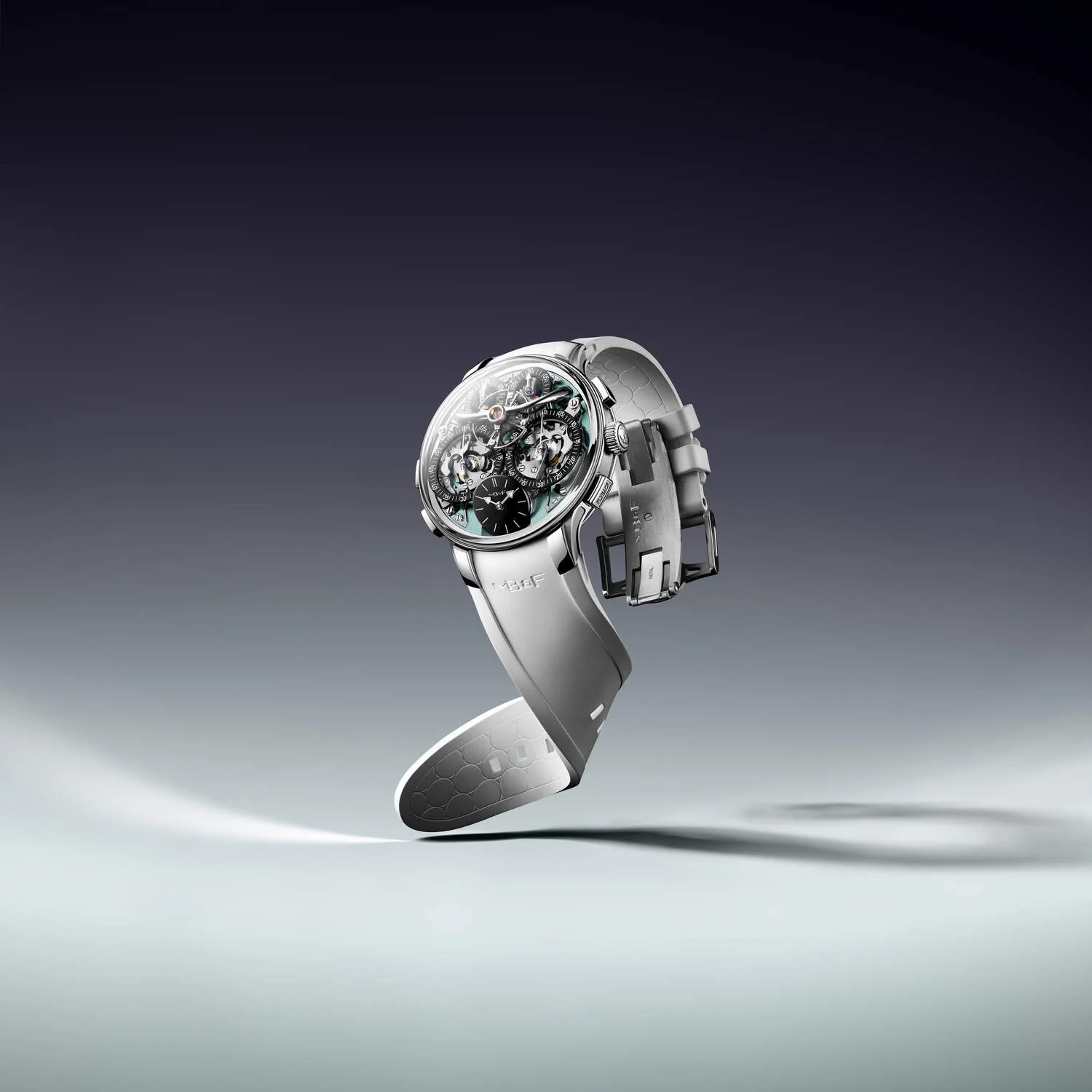 Despite the theatrical looks, this is very much an EVO, which means MB&F wants you to actually wear it. You get 80 metres of water resistance, a screw-down crown, an integrated rubber strap, and the brand’s FlexRing shock absorber designed to protect the movement when life gets a bit less gallery-opening and a bit more real-world. It’s still wildly exotic, but it’s exotic with a gym membership.